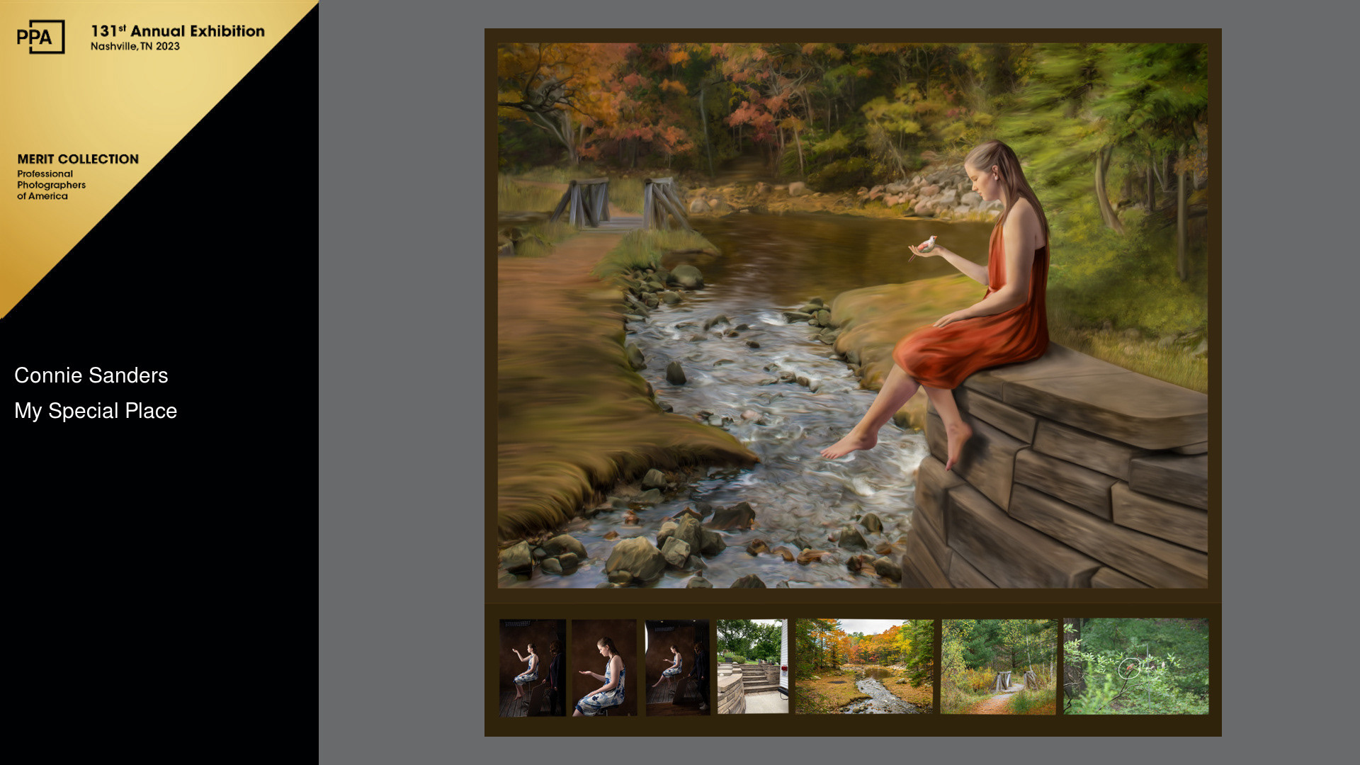 These paintings received merits in the International Photographic Competition in 2021 and 2020. The first three were further judged to be placed in the prestigious Imaging Excellence Collection Book, and the next one (Scotch Whiskers) was scored high in the Merit Collection and was selected for the Showcase Collection Book. The small thumbnails with some of the paintings were required to enter them into the Artist Competition. The thumbnails show all the individual images that were composited together to make the final painting.